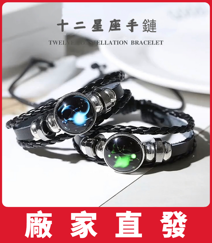 4分鐘前夜光手鍊十二星座皮繩手串學生潮人情侶飾品首飾女韓版時尚帥氣 - 【夜光手鍊十二星座 三入组】